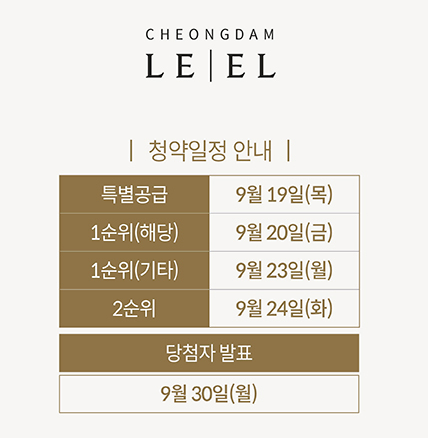 청담르엘은 서울 강남구에 위치해 있으며, 투기과열지구로 지정된 지역이므로 1순위 자격을 충족하는 것이 매우 중요합니다.