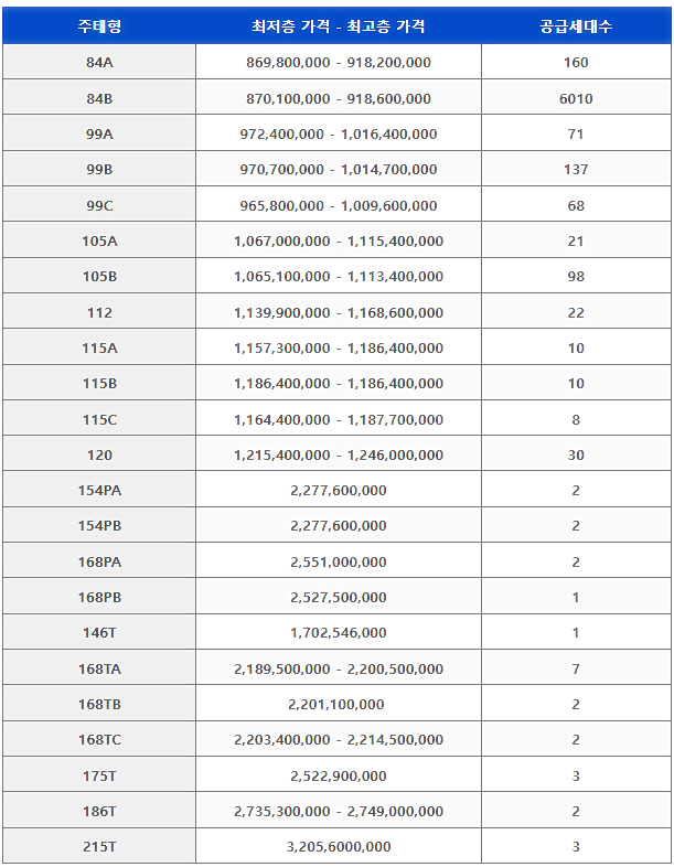 힐스테이트 레이크 송도 5차 아파트의 분양가는 주택형에 따라 차이가 있습니다. 84A형의 분양가는 869,800,000원에서 918,200,000원 사이이며 99A형은 972,400,000원에서 1,016,400,000원 사이입니다. 가장 높은 분양가는 215T형으로 3,205,600,000원입니다.